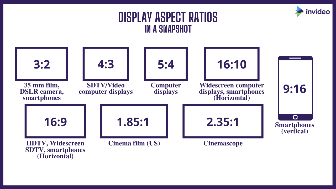 Sebagian besar bingkai pada kamera, video digital, kanvas, desain maupun gambar tiap sudutnya presisi. Contoh aspect ratio adalah ukuran bingkai video yang kamu tonton di Youtube maupun Netflix biasanya punya rasio 16:9. kadang-kadang beda perangkat pun beda juga rasionya.