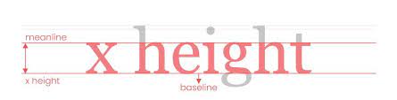 Istilah terakhir adalah x-height dan line-height. X-height merupakan jarak antara baseline dengan meanline. Adapun huruf yang dijadikan patokan huruf kecil adalah huruf X. Perbandingan x-height dengan tinggi huruf kapital (alias, jarak baseline-capline) bervariasi. Ada font teks yang memiliki height relatif besar seperti Georgia dan ada yang relatif lebih kecil seperti Adobe Garamond. X-height merupakan salah satu faktor penting bagi legibilitas (keterbacaan) yaitu kemudahan suatu huruf untuk bisa dikenal secara visual. X-height yang cukup besar—asal tidak terlalu besar—membantu legibilitas, menunjukkan bahwa identitas huruf banyak berada di daerah x-height dan pada huruf kecil. Agar membantu keterbacaan, x-height yang besar juga biasanya disertai dengan tangkai-tangkai ascender yang cukup tinggi, agar membantu membedakan huruf kapital dan huruf kecil.