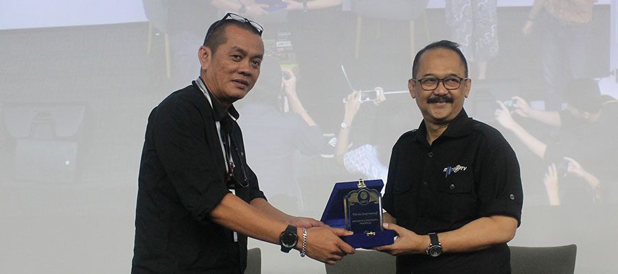 Agus Pramono, produser senior acara Kick Andy di Metro TV memberikan sharing mengenai pengalamannya sebagai produser kepada mahasiswa Jurnalistik UMN pada Selasa (29/11) di Lecture Theater Universitas Multimedia Nusantara