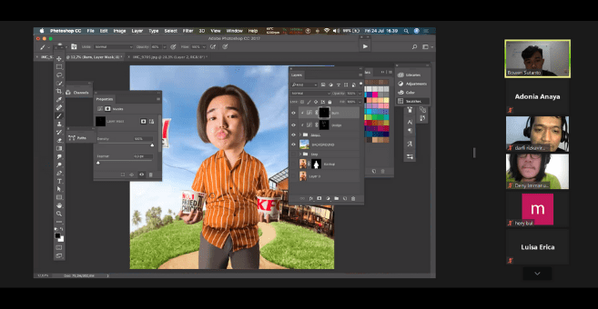 TANGERANG – “Digital Imaging adalah seni menggabungkan gambar yang mulai dilakukan pada tahun 60-70an. Seni dalam mendesain ini awalnya digunakan dalam dunia advertising atau periklanan,” ungkap Darfi Rizkavirman selaku Koordinator Laboratorium Fakultas Seni Desain Universitas Multimedia Nusantara yang memoderatori Webinar bertajuk “Bincang Editing : Bobblehead Editing Technique” yang diadakan pada Jumat, 24 Juli 2020.