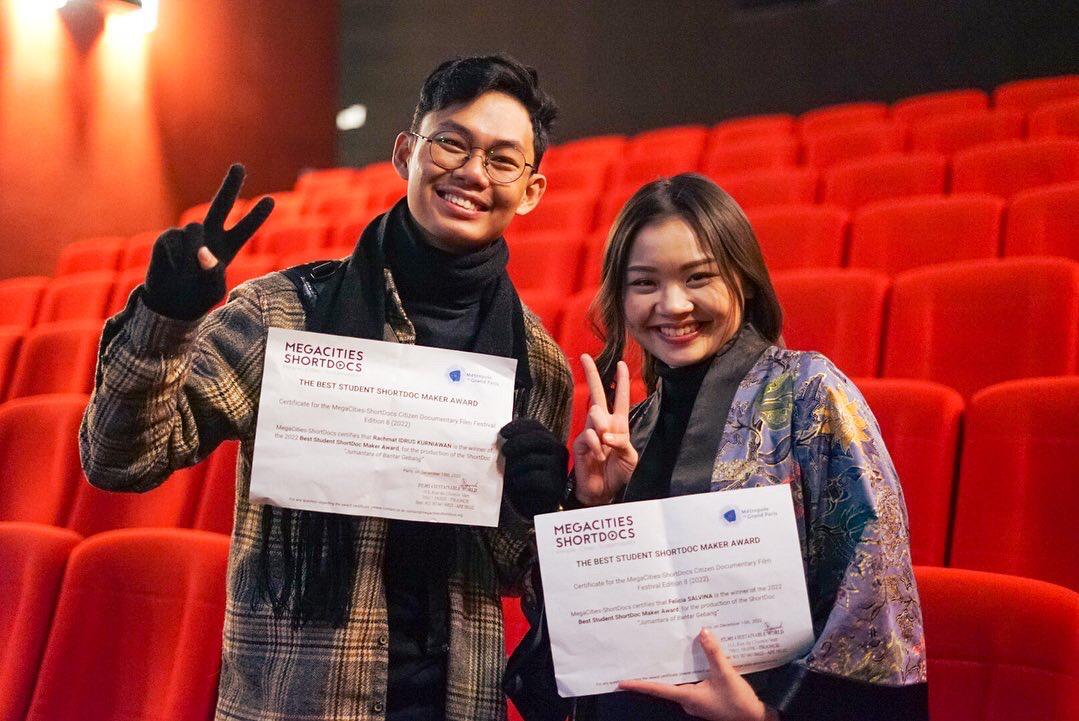 Rachmat Kurniawan Idrus (Kiri) dan Felicia Salvina (Kanan) saat menghadiri The 8th Edition of the MegaCities-ShortDocs Festival, Perancis (Dok. Rachmat)