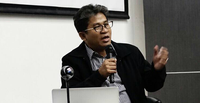 Agus Sunarto dalam Seminar Convergence from A to Z di Universitas Multimedia Nusantara (UMN) dalam rangkaian acara Televisionair 2017. Photo: Felysia Agustin