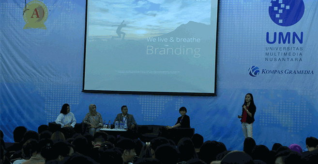 Oktober 10, 2017Kehidupan manusia saat ini dipenuhi dengan berbagai macam brand, mulai dari bangun tidur di pagi hari hingga kembali tidur di malam hari, kita bersinggungan dengan begitu banyak brand. Hal tersebut disampaikan oleh Stella Angelica, Marketing Executive DM ID, salah satu pembicara dalam Kuliah Umum “How We Do Branding” yang diselenggarakan di Function Hall, 5 Oktober 2017 lalu. Acara tersebut terselenggara atas kerja sama antara Program Studi Strategic Communication UMN dengan DM ID.