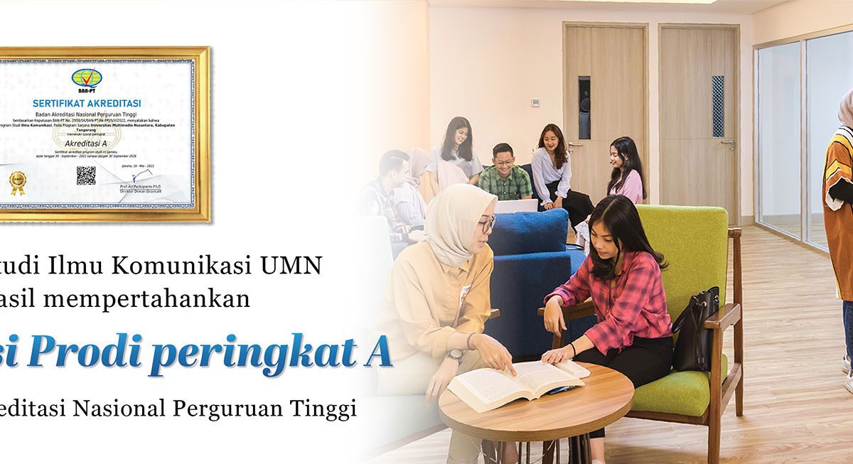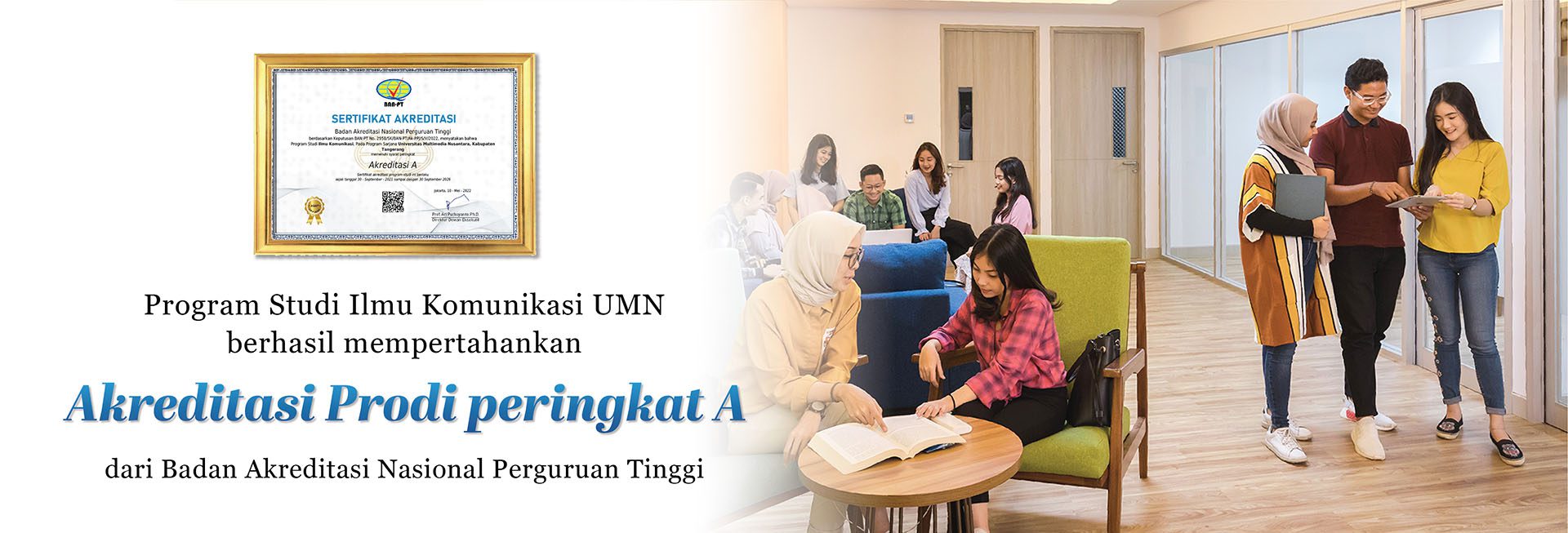 TANGERANG – Program Studi Ilmu Komunikasi Universitas Multimedia Nusantara kembali meraih akreditasi A dari Badan Akreditasi Nasional Perguruan Tinggi (BAN-PT). Legalitas akreditasi ini tertuang dalam Surat Keputusan Nomor 2958/SK/BAN-PT/Ak-PPJ/S/V/2022.