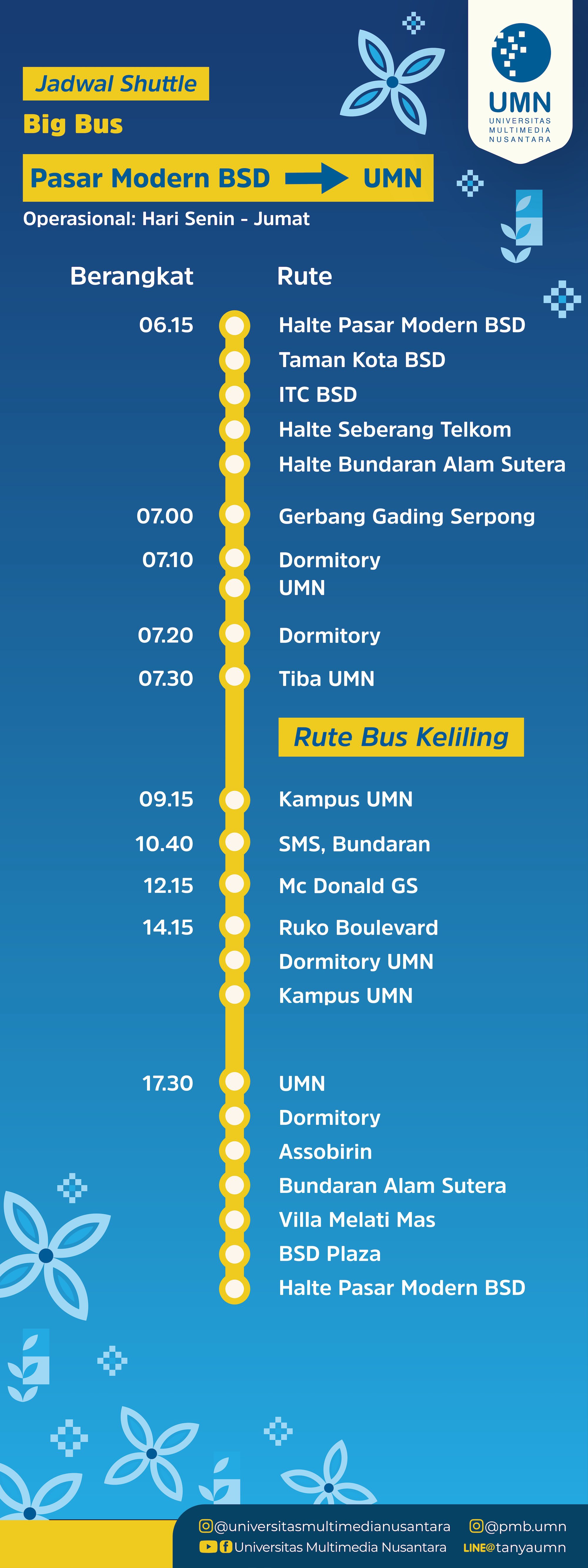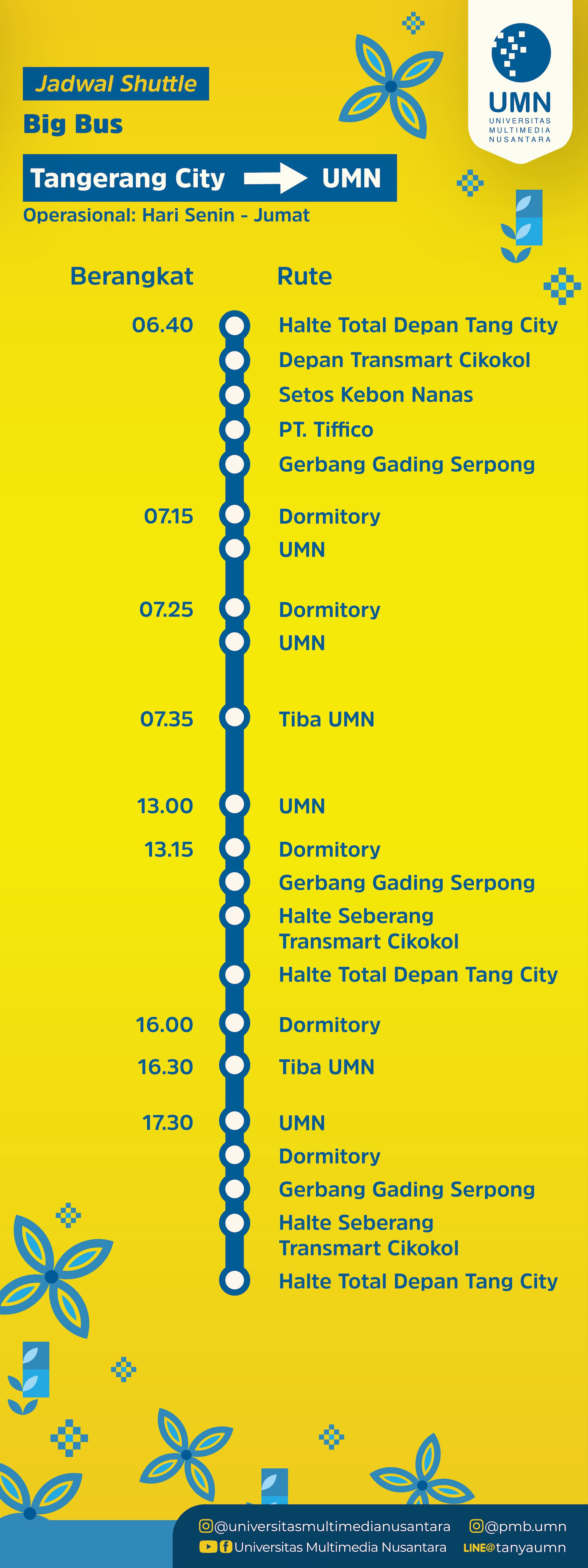 For those UMN students that live in Tangerang district, UMN now provides a Campus Bus with UMN