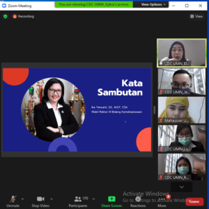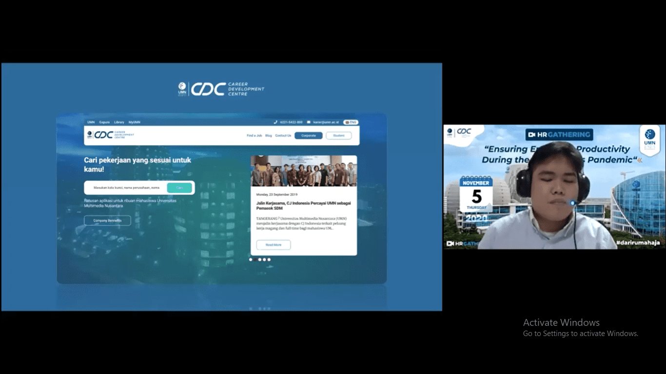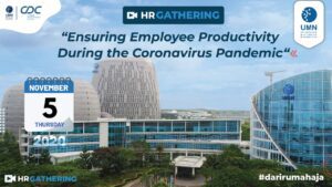 November 12, 2020Tangerang – Career Development Center (CDC) Universitas Multimedia Nusantara mengadakan acara yang diadakan secara virtual bertajuk “Ensuring Employee Productivity During The Coronavirus Pandemic” pada 5 November 2020. HR Gathering merupakan acara rutin tahunan yang diselenggarakan oleh CDC UMN dibawah koordinasi rektorat bidang kemahasiswaan.