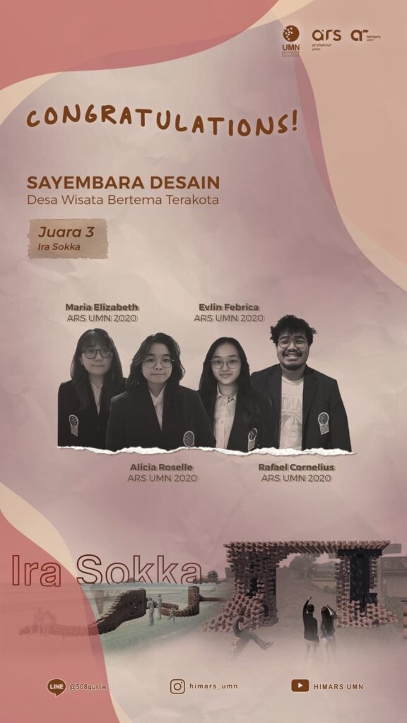 Januari 25, 2023Published by umnadmin on Januari 25, 2023Categories Arsitektur Berita GeneralTim Mahasiswa Arsitektur UMN Meraih Juara 3 di Kompetisi Sayembara Desa WisataTANGERANG – Keren banget, tim mahasiswa Arsitektur Universitas Multimedia Nusantara (UMN) angkatan 2020, berhasil meraih […]