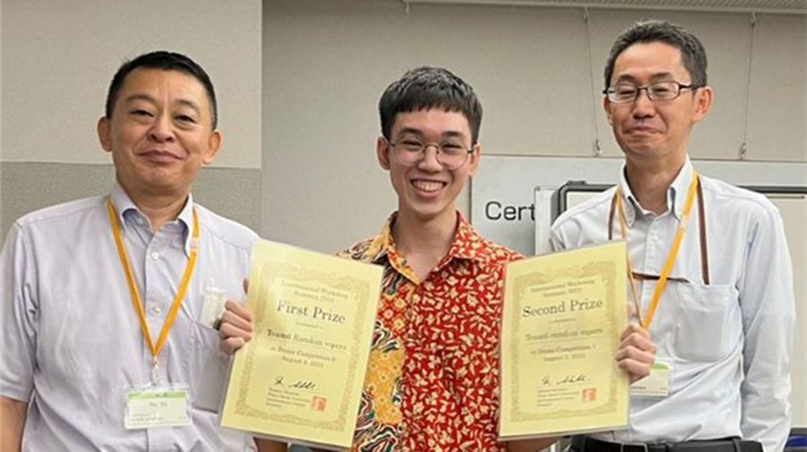 Raphael Malcolm yang satu kelompok dengan mahasiswa dari Jepang dan Taiwan berhasil menang di dua kategori lomba. (Doc. UMN)