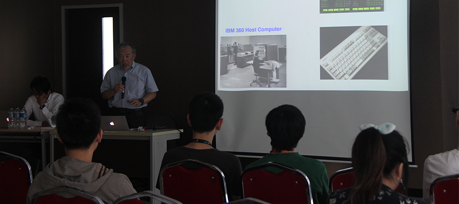 Profesor Kiyoshi Tomimatsu dari Kyushu University, Jepang memberikan sharing kepada mahasiswa IMD UMN terkait pentingnya konsep dalam membuat sebuah desain bagi media interaktif di Executive Loung UMN, Senin (21/3) lalu.