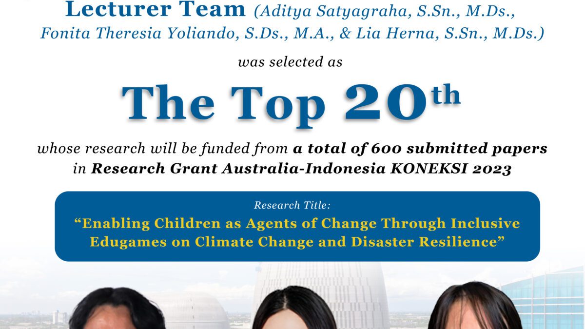 Tim riset yang melibatkan dosen DKV UMN mengusung tajuk penelitian “Enabling Children as Agents of Change Through Inclusive Edugames on Climate Change and Disaster Resilience”. Riset ini menggunakan pendekatan edugames untuk edukasi soal perubahan iklim.