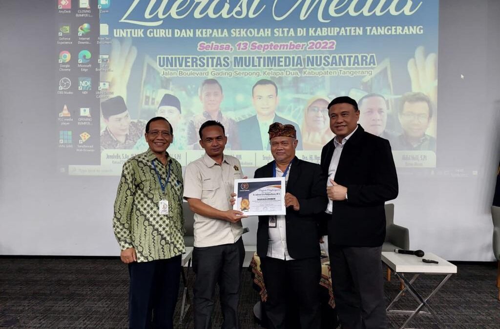 Foto bersama pada acara Literasi Media untuk Guru dan Kepala Sekolah SLTA di Kabupaten Tangerang. (sumber: UMN)