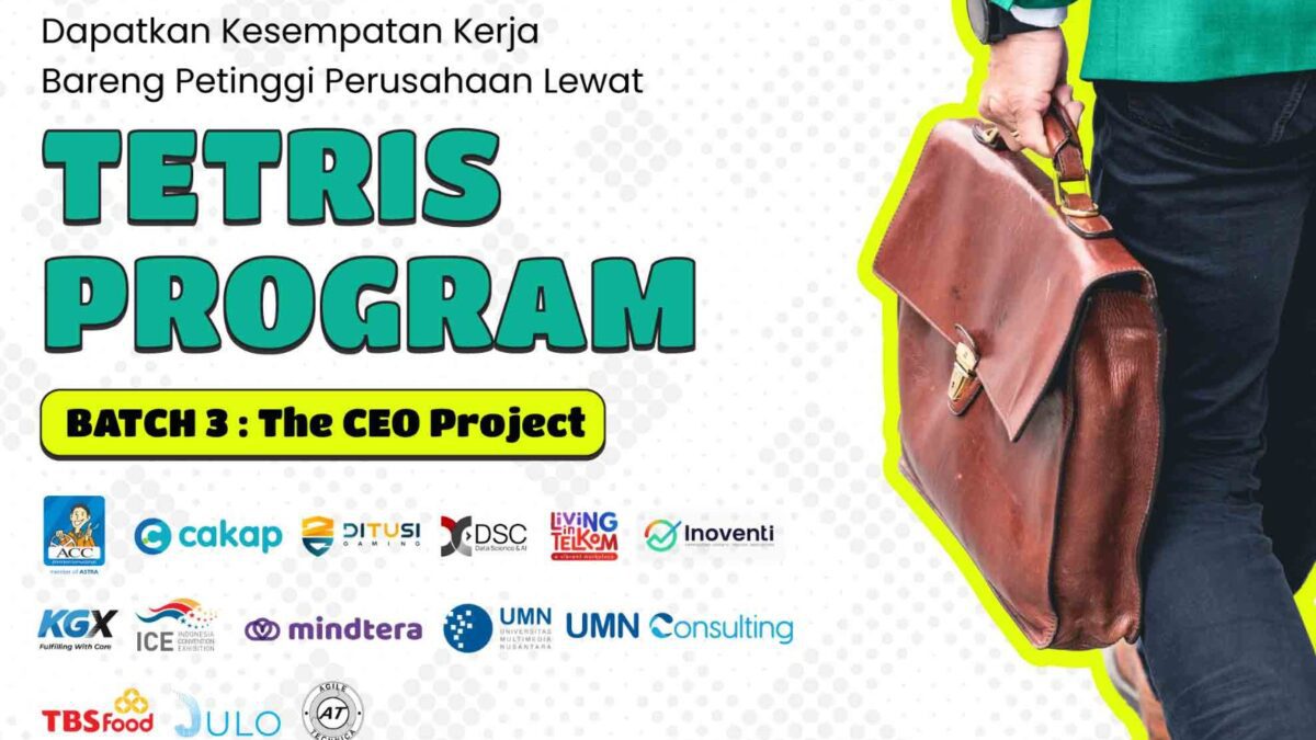 Persiapkan diri untuk buat terobosan baru menjadi calon talent data yang andal dengan mengikuti Tetris Program Batch 3 : The CEO Project, masa registrasi terbuka hingga tanggal 6 April 2023.