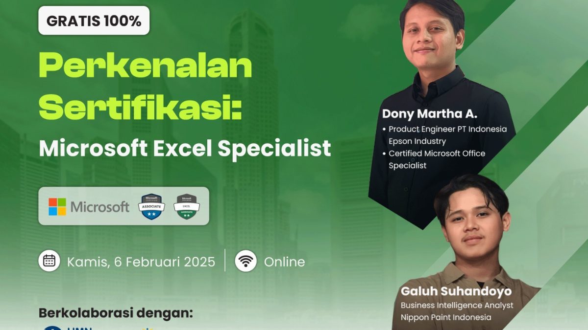 Dalam program ini, peserta akan mendapatkan kesempatan untuk menjelajahi fitur-fitur utama dari Microsoft Excel serta memahami bagaimana sertifikasi dapat membantu meningkatkan kemampuan teknis mereka di bidang analisis data. Sertifikasi Microsoft Excel tidak hanya menjadi bukti kompetensi yang diakui secara internasional, tetapi juga menjadi salah satu keunggulan utama bagi profesional yang ingin menonjol di dunia kerja.