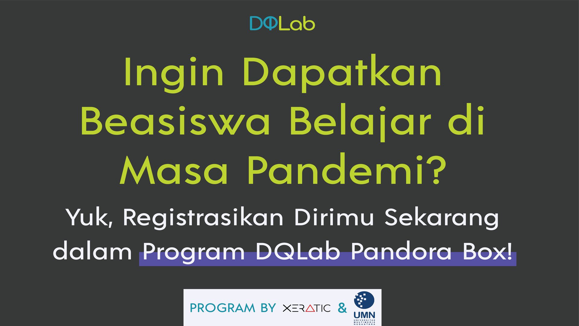 Dapatkan Beasiswa Belajar di Masa Pandemi. Registrasikan Dirimu Sekarang diProgram DQLab Pandora Box!