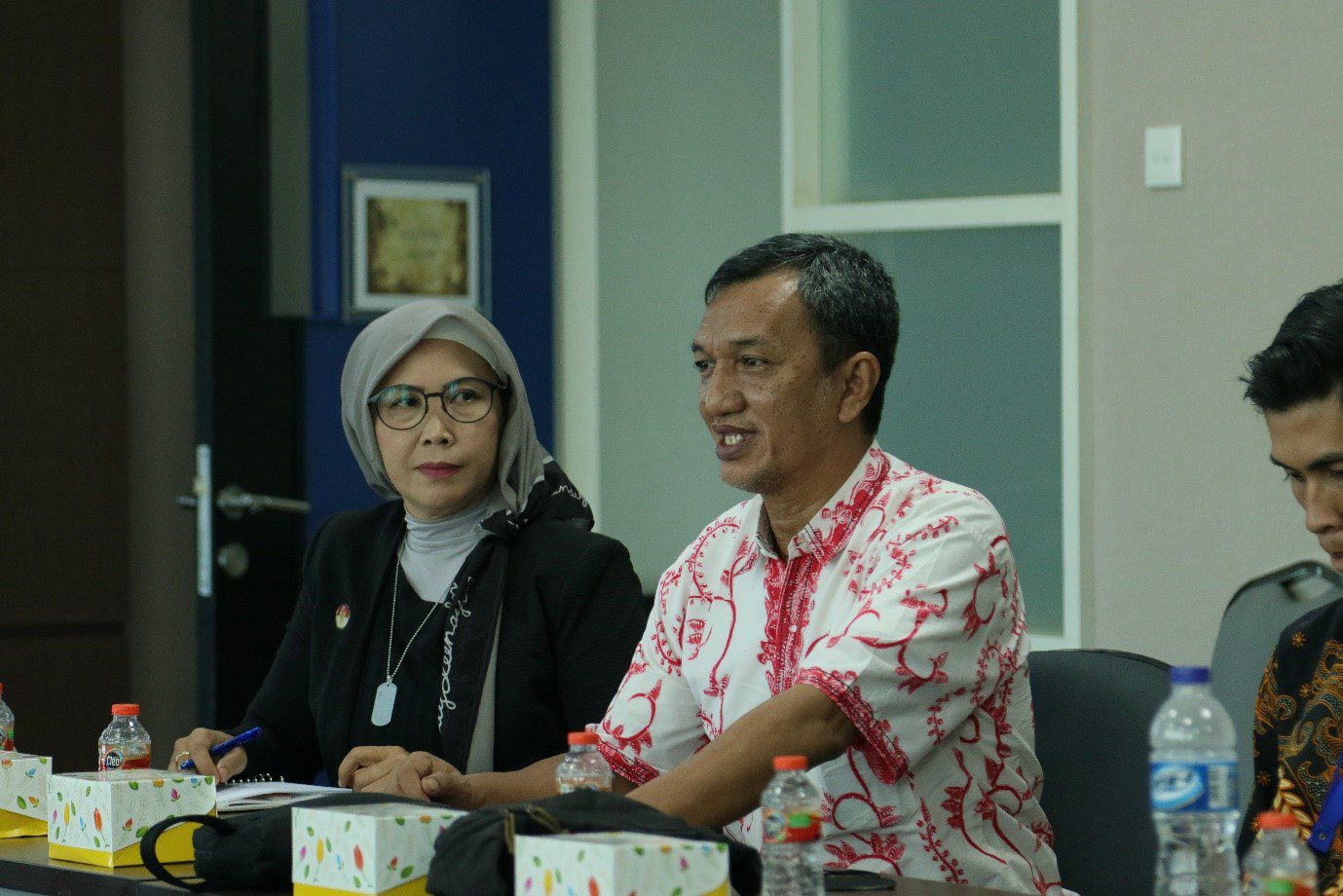 Dante Rigmalia (kiri) dan Kikin Purnawirawan T. S. (kanan) saat berdiskusi terkait kerja sama dengan UMN. (dok. UMN)