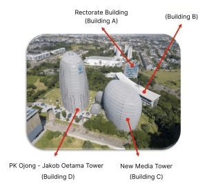UMN’s passive design includes sustainable landscaping such as rooftop gardens on the third floor of the New Media Tower and the PK Ojong – Jakob Oetama Tower. These green spaces not only enhance aesthetic appeal but also improve the microclimate around the buildings. Strategically planted trees reduce the incoming air temperature from 34°C to 31°C before it enters the buildings, and combined with double facades, the indoor temperature can be lowered to approximately 28°C, reducing the need for artificial cooling. The rooftop gardens also serve as valuable green open spaces that contribute to energy savings.