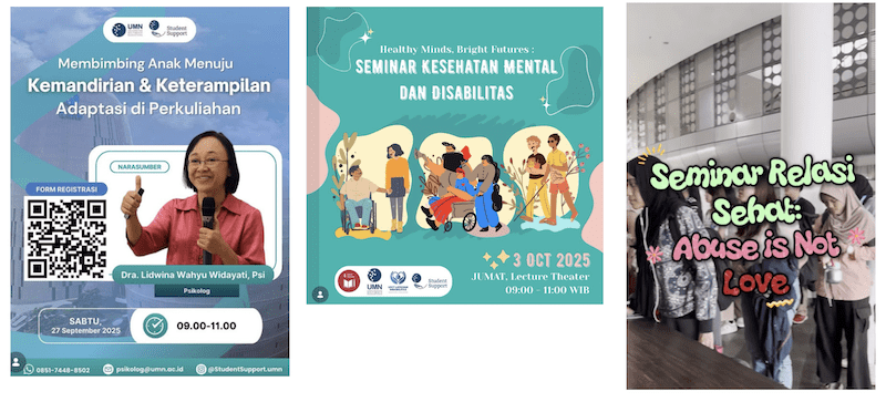 October 5, 2025Ensuring access to mental health support is essential for fostering a safe, supportive, and productive academic environment. Universitas Multimedia Nusantara (UMN) is committed to promoting the psychological well-being of both students and staff by providing accessible mental health services, professional counseling, and preventive well-being programs.