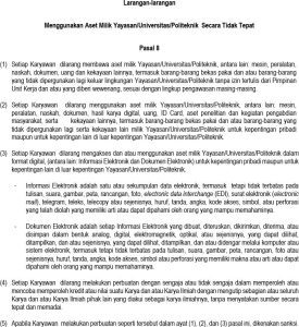 Under these regulations, employees are strictly prohibited from misusing university or foundation assets, including physical, financial, and digital resources. This includes removing institutional property from campus without written authorization, as well as accessing or using digital assets improperly. The misuse of equipment, documents, money, or any other property—including used goods—is explicitly forbidden under Article 8, Sections 1–4, with violations subject to sanctions as outlined in Section 5.