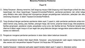 In addition, UMN enforces a strict prohibition on receiving gifts or gratification. Employees are not allowed to accept any form of benefit—such as money, goods, services, discounts, commissions, interest-free loans, travel tickets, accommodation, medical services, or other incentives—that are unrelated to institutional interests or that could lead to abuse of authority. This is regulated under Article 8 and enforced through penalties specified in Article 10, Sections 1–5.