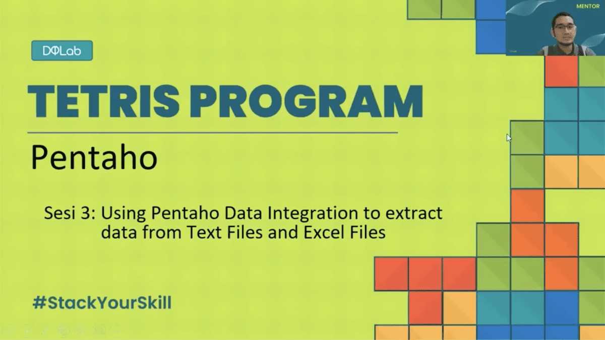 TANGERANG – On Monday (07/03/22), DQLab virtually conducted the 3rd session of the Tetris Program, discussing how to use Pentaho Data Integration (PDI) to extract data from text and excel files. This is also a follow-up session from the previous PDI session, discussing using PDI as an ETL tool. The same speaker from the last PDI session, Iqbal Hanif, a Big Data Analytics at Telkom Indonesia, returned to present the materials regarding the topic.