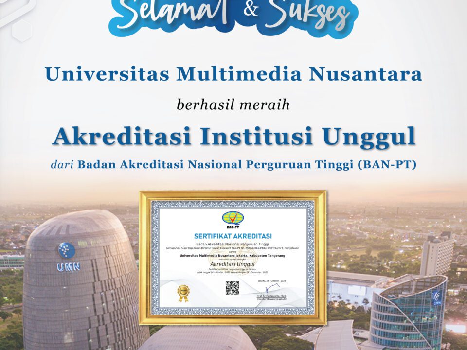 November 7, 2023Published by umnadmin on November 7, 2023Categories General EN NewsOnly 16 Years Old, UMN Achieves “Excellent” Institution Accreditation from BAN-PTUMN achieves “Excellent” accreditation from BAN-PT (Doc. UMN) TANGERANG – Multimedia Nusantara University has received […]