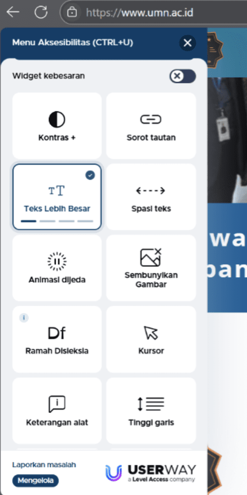 At UMN, we are committed to creating an inclusive and accessible environment for all individuals, including those with disabilities. Our website features a comprehensive set of accessibility options designed to enhance user experience for people with various needs. These features include: