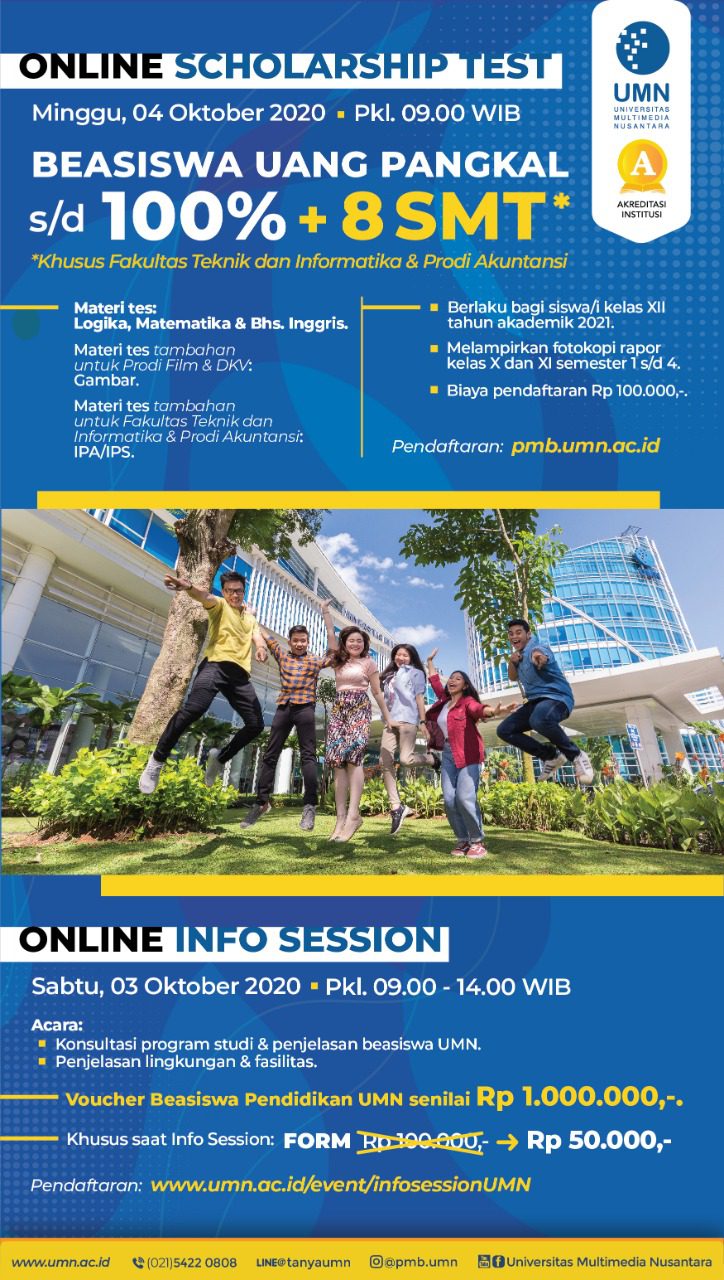 Yuk buruan daftar Tes Beasiswa UMN dan raih beasiswa di UMN! See ya Sahabat UMN!