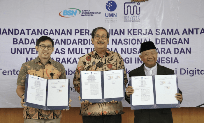 In a step toward supporting technological innovation in environmental and energy systems, the university entered into a Cooperation Agreement (PKS) with the National Metrology Institute of Indonesia, Multimedia Nusantara University (UMN), and the Indonesian Metrology Society (MMI). This collaborative R&D initiative focuses on the development of digital calibration certificates, which support accuracy and transparency in energy and environmental measurements. This initiative strengthens the university’s Climate Action Plan through concrete support for data integrity in sustainable energy systems, while promoting collaboration with national institutions and scientific communities. Read the news posted by BSN here.