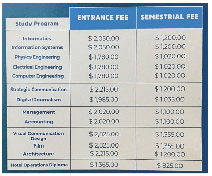| STUDY PROGRAM | ENTRANCE FEE | SEMESTRIAL FEE |