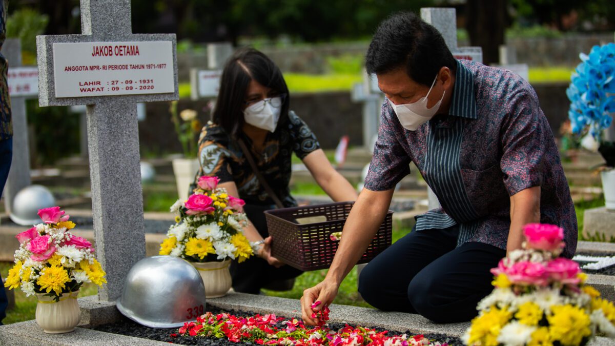 TANGERANG – Jakob Oetama adalah Pendiri Kompas Gramedia dan Pemimpin Umum Harian Kompas yang dikenal sebagai “guru masyarakat” dengan mengedepankan nilai-nilai kemanusiaan. Memperingati Dies Natalis ke-15 UMN ini, sejumlah keluarga besar Yayasan Multimedia Nusantara dan Multimedia Nusantara Politeknik berziarah ke makam Jakob Oetama di Taman Makam Pahlawan Kalibata, Jakarta Selatan pada Sabtu lalu (27/11/21).