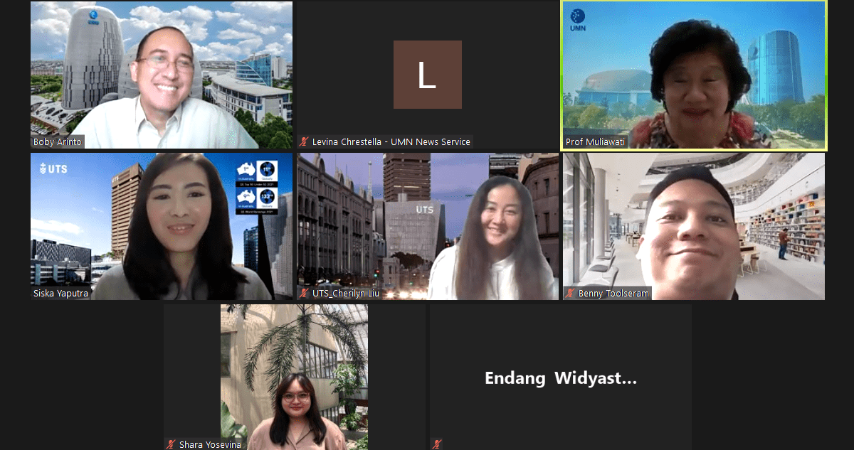 May 7, 2021TANGERANG – Universitas Multimedia Nusantara (UMN) dan The University of Technology Sydney (UTS) mengadakan webinar melalui Zoom meeting pada Kamis (06/05/2021). Webinar ini diadakan untuk mensosialisasikan bergabungnya UMN dalam program Offshore Learning Centre (OLC) UTS kepada mahasiswa-mahasiswa dan education agents UTS.