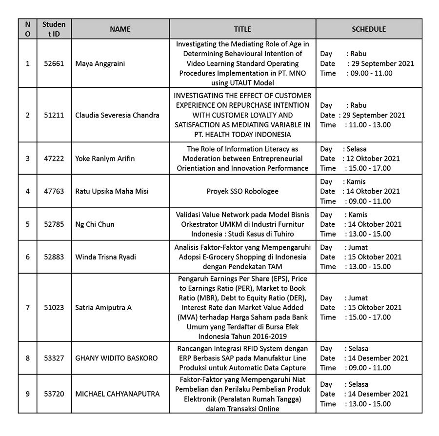 - Organizing a quality learning process, supported by qualified and professional teaching staff with the latest curriculum in the form of mastery of the latest and applicable case studies in the field of technology-based management.