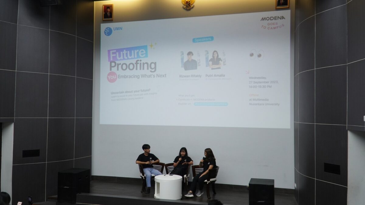 Modena, an electronic company, currently focuses not only on product development but also on human resources. This time, the Modena goes to campus event brought up the theme “Future Proofing.” The event invited Rizwan Rifaldy and Putri Amalia as keynote speakers.