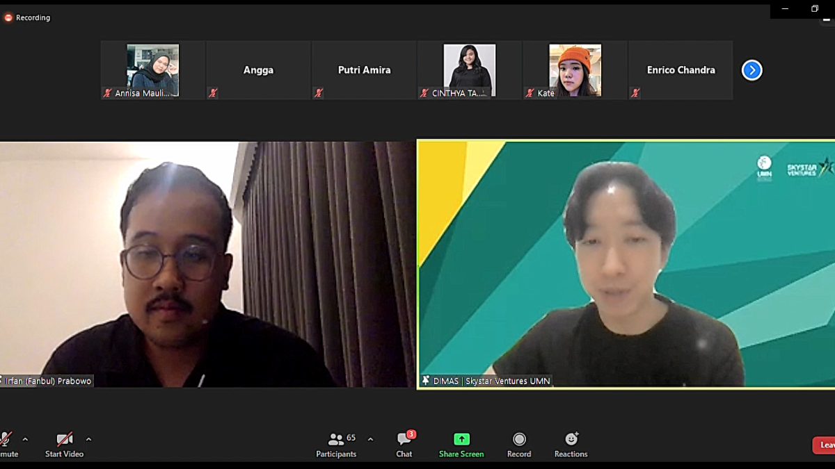 Skystar Ventures, inkubator bisnis di Universitas Multimedia Nusantara (UMN) mengadakan Startalk dengan topik “Achieving Startup’s Recognition with Optimized Branding and Marketing Strategies”. Webinar ini dilakukan secara daring melalui Zoom, Selasa (6/7/2021).