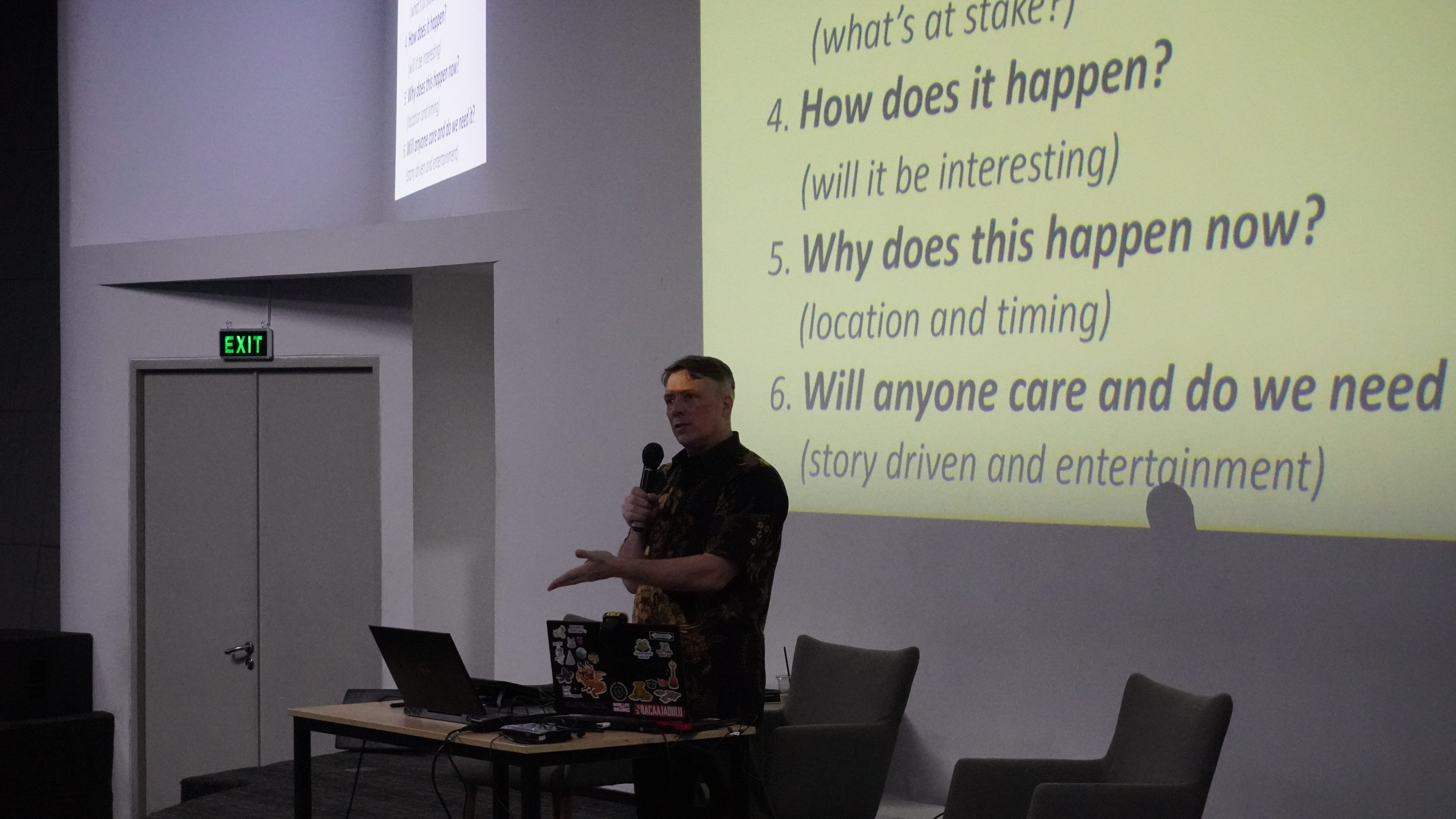 Woody Woodman visited UMN as a guest lecturer to talk about storyboarding. (Doc. UMN)