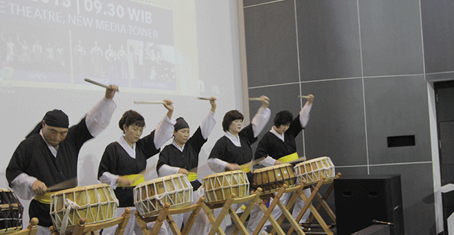 The inauguration of KCSU at umn lecture hall was held with great fanfare. Also attended by the rectorate of UMN, Chairman of Korea – Indonesia Friendship Association, Director of Silla Korean Center, Education Attaché of the Korean Embassy, journalists from Dong A Newspaper, as well as other invited guests. The event featured Nanta show (by Korean Center Banten) as well as traditional flute dae geum (by Korean Cultural Center Indonesia).