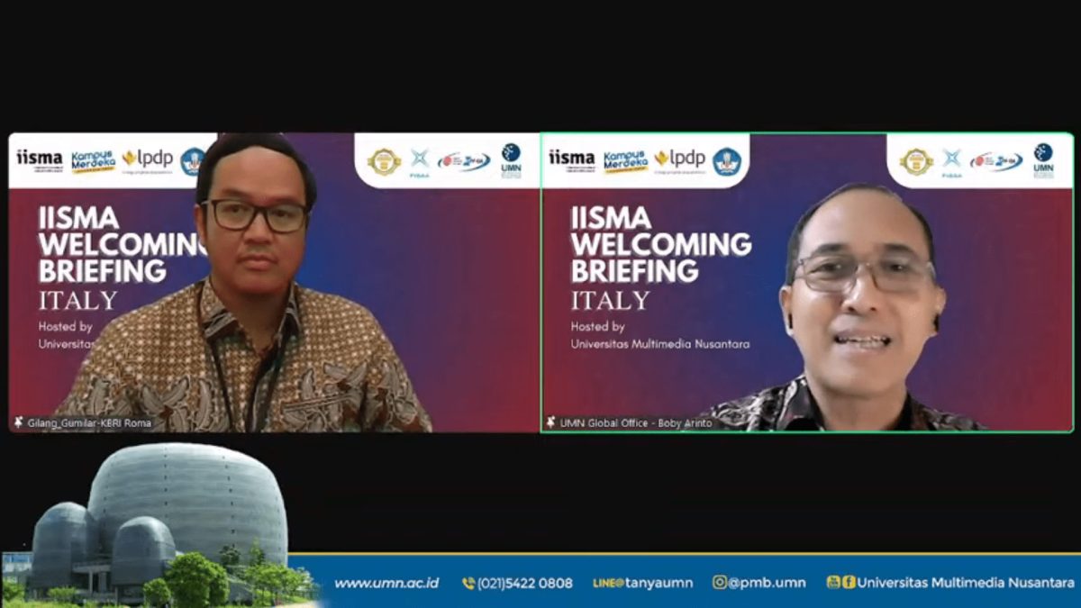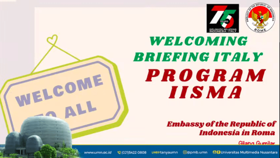 TANGERANG—On September 17, 2024, Universitas Multimedia Nusantara (UMN) hosted an online welcoming briefing for the Indonesian International Student Mobility Awards (IISMA) Italy with the Indonesian Embassy in Rome, Italy. Various UMN representatives, IISMA representatives, and the awardees attended the briefing.