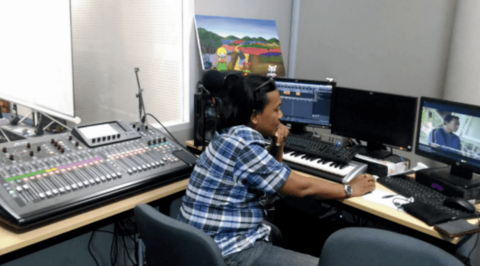 UMN Visual Communication Design Program lecturer, Clemens Felix Setiyawan, S.Sn., M.Hum., during the pre-sound post process for the film “Setan Alas!” at the UMN Sound Design Lab. (Doc. Clemens Felix Setiyawan)