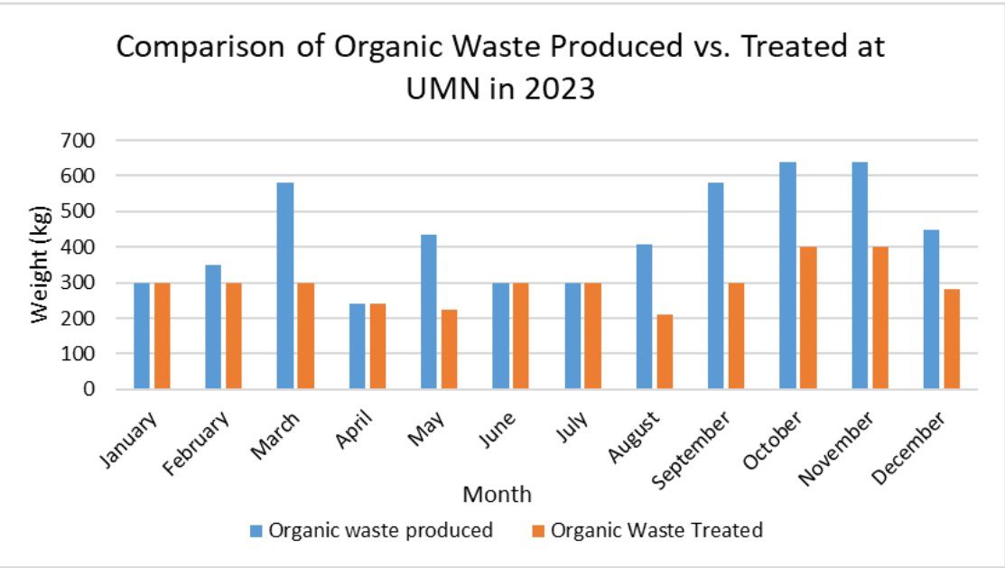 UMN’s Organic Waste Produced vs. Treated Throughout 2023 (Doc. UMN)