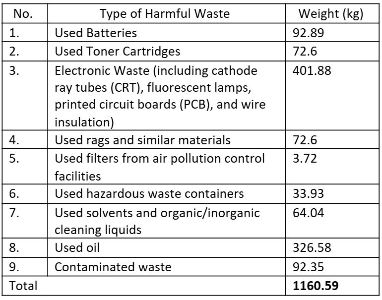 Additionally, UMN generates a disposal manifest for all hazardous materials, which is reported to government authorities. This documentation serves as a formal record of UMN’s dedication to safe waste management, emphasizing accountability and transparency. Kindly check the table below to see how much B3 items we have recycled throughout 2023.