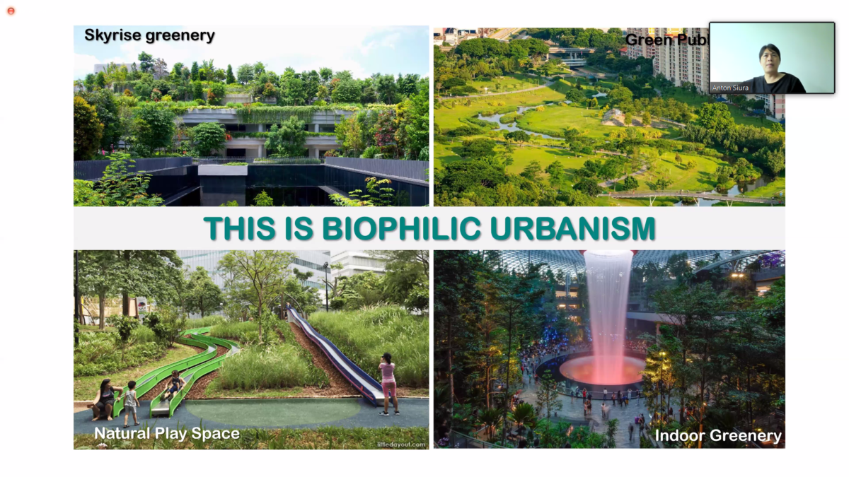 “Ini siklus yang akan berputar kalau kita tidak tangani. Gimana kita bisa hidup, bermain, dan bekerja di tempat yang close to nature. Biophilic urbanism inilah yang konsepnya untuk memaksimalkan space-space yang ada supaya punya koneksi yang langsung dengan lingkungan alam,” jelas Anton.
