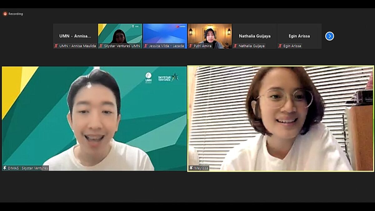 Meylissa Priscilla as Lazada Indonesia’s Senior Brand Creative Manager (right) as a speaker at the Startalk Skystar Ventures webinar. (doc. UMN)