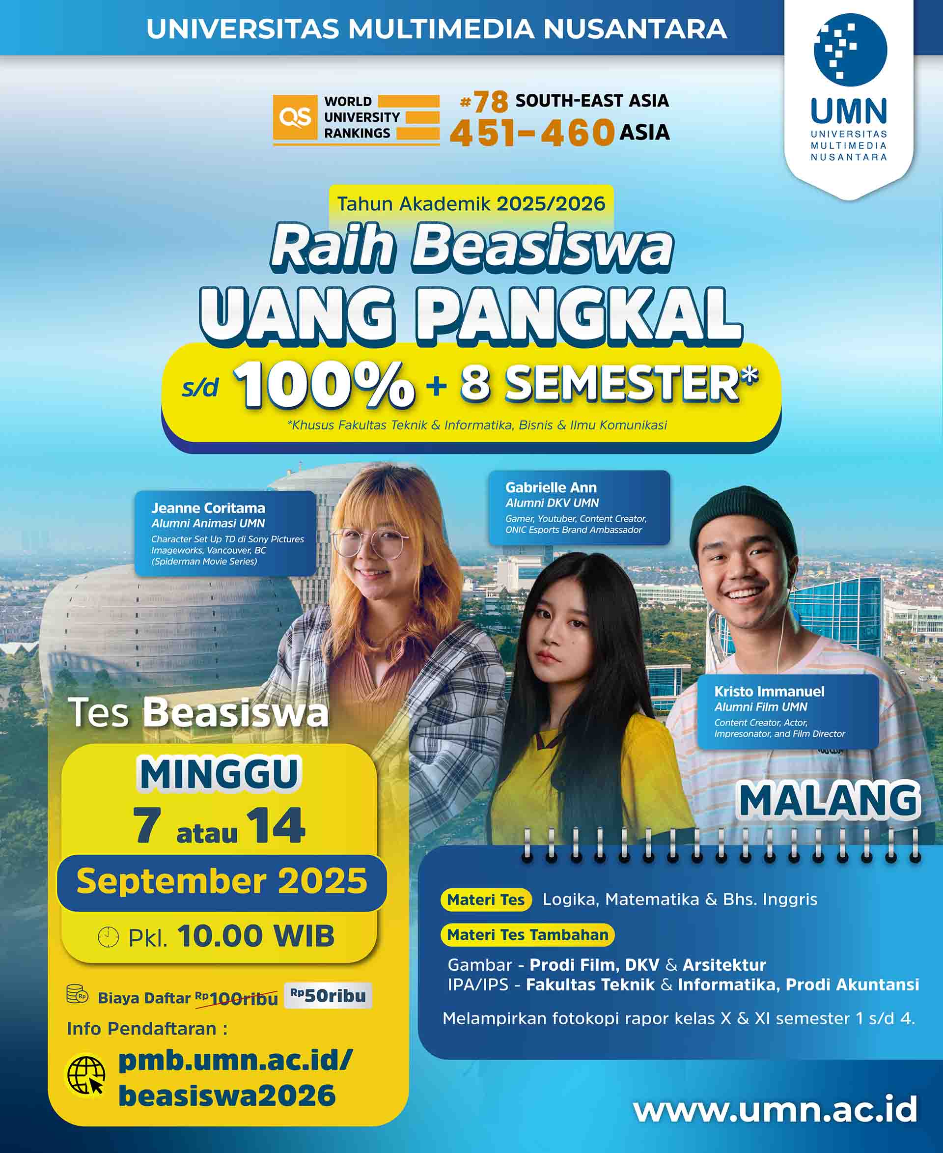 #AgendaUMN #UniversitasMultimediaNusantara #TesBeasiswaUMN #TesBeasiswa #InfoBeasiswa #BeasiswaKuliah #SahabatUMN