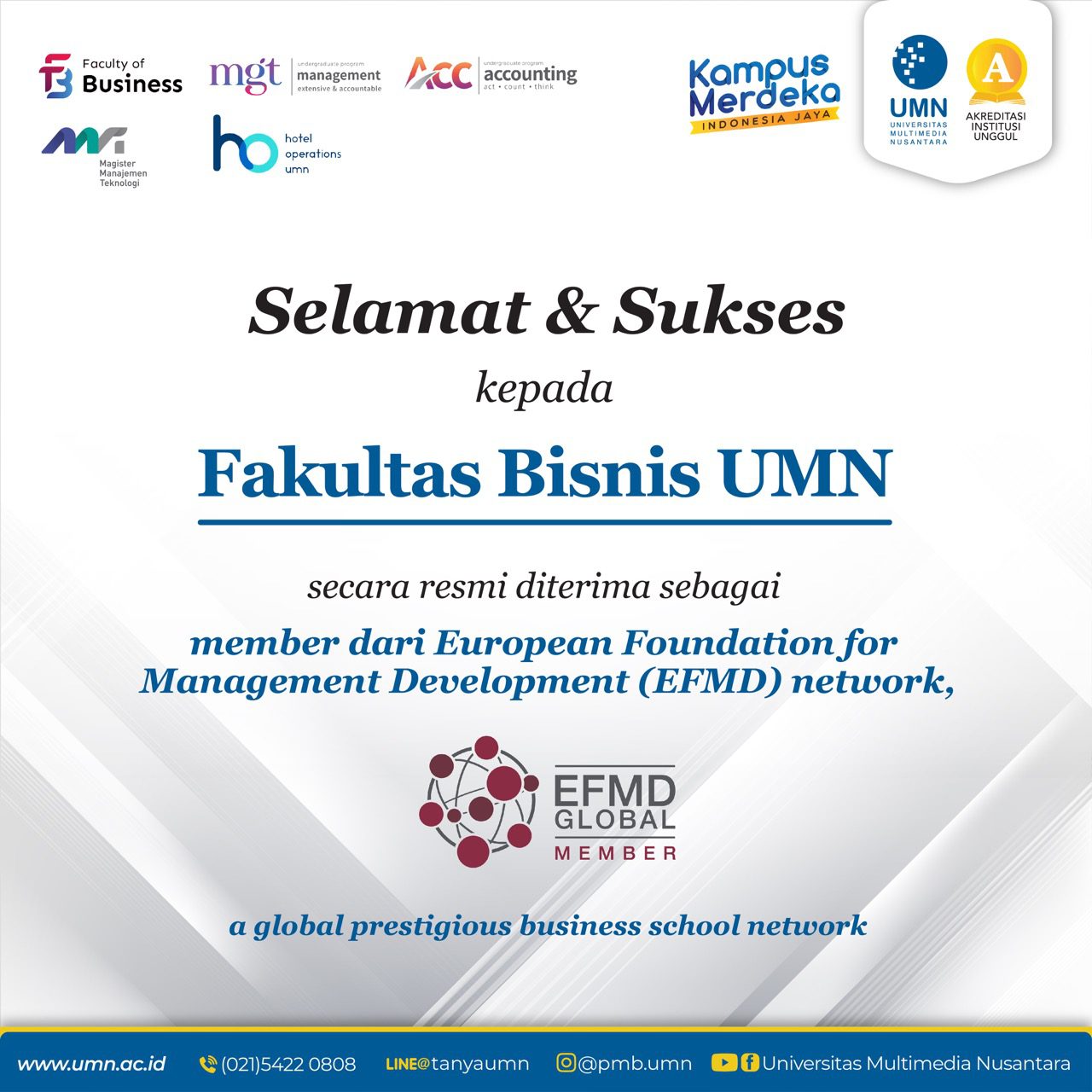 “Universitas Multimedia Nusantara, Faculty of Business, is a member of EFMD Global. EFMD is a network of business schools and corporation dedicated to enhance excellence in management education and development globally”.