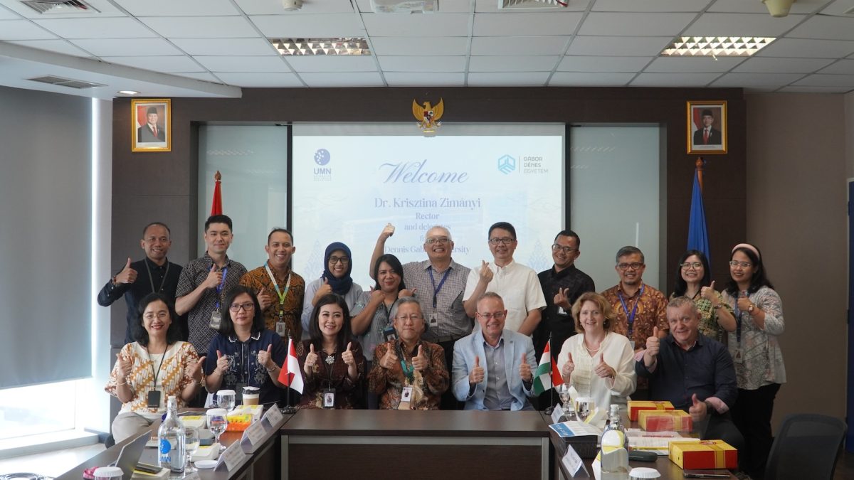 Tangerang, (20/10/2025) – Universitas Multimedia Nusantara bersama dengan Dennis Gabor University (DGU) mendiskusikan berbagai peluang kolaborasi internasional. Kolaborasi ini nantinya akan mencakup empat fakultas di UMN dan lingkup yang luas mulai dari riset, magang, kompetisi internasional, dan berbagai kolaborasi berkelanjutan lainnya.