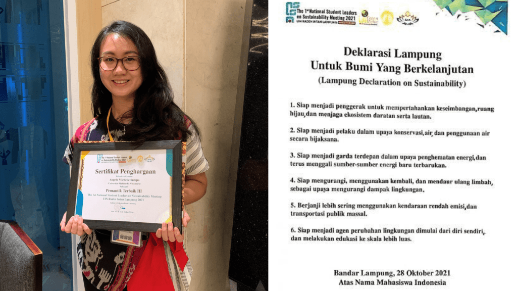 Angela Michelle Sutopo meraih posisi ketiga sebagai “Pemantik Terbaik” di ajang The 1st National Student Leaders on Sustainability Meeting (dok. Angela)