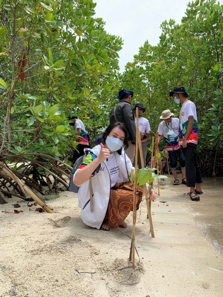 Angela saat melakukan aksi tanam mangrove dan beach clean up di Pulau Pahawang (dok. Angela)