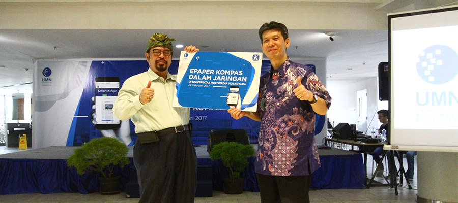 Untuk meningkatkan minat baca masyarakat Indonesia serta bertransformasi sesuai dengan perkembangan zaman, Harian Kompas membuat beberapa gebrakan baru, yaitu dengan meluncurkan e-paper Kompas dalam jaringan (daring) dan Kompas.id. Peluncuran yang dilakukan di Universitas Multimedia Nusantara (UMN) pada Selasa (28/2) ini menjadikan UMN sebagai kampus pertama yang bisa mengakses e-paper Kompas daring (https://epaper.kompas.umn.ac.id/) secara gratis di jaringan wifi UMN.