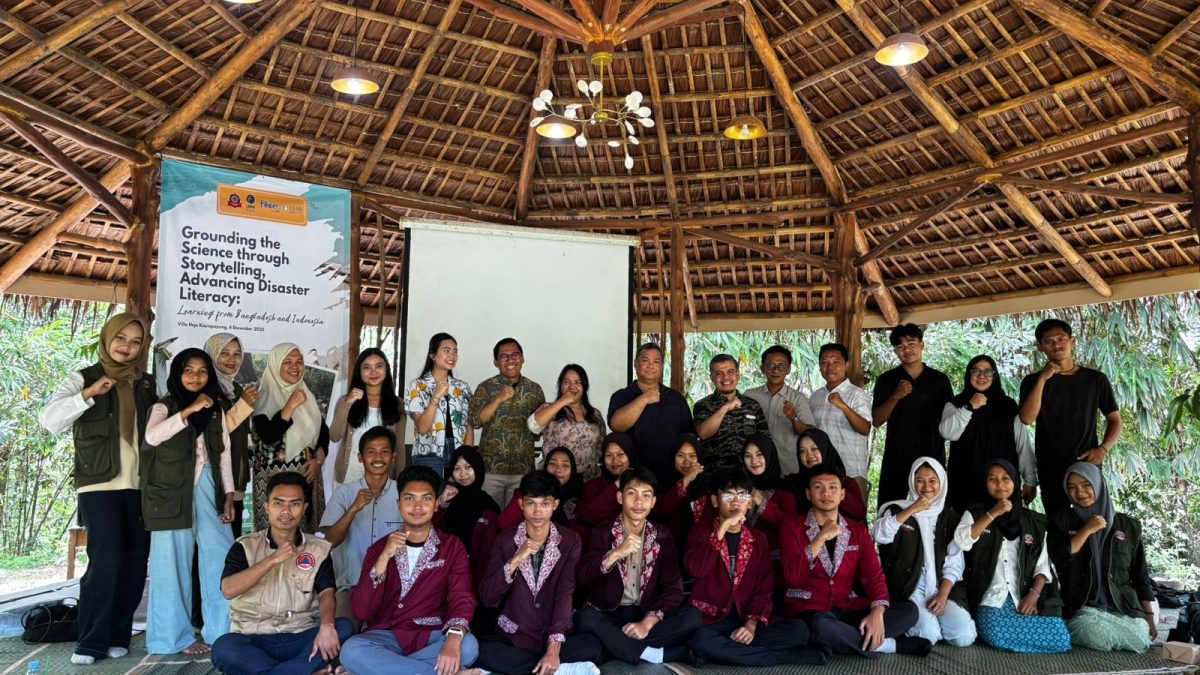 Lebak Selatan, 6 Desember 2025 – Dalam mengedukasi mitigasi bencana tidak harus selalu membosankan dan kaku. Kegiatan pengabdian masyarakat internasional “Grounding the Science Through Storytelling”, yang dilaksanakan di Villa Hejo Kiarapayung pada Sabtu, 6 Desember telah membuktikan hal ini secara jelas. Kegiatan ini berhasil dilaksanakan dan mampu memadukan wawasan akademik internasional dengan seni kreatif, serta ditujukan untuk anak muda dan relawan yang membantu masyarakat pulih dari bencana.