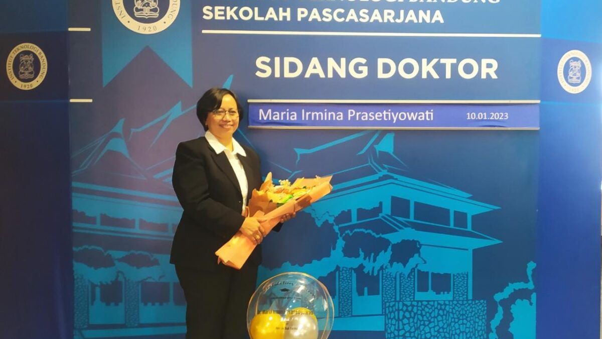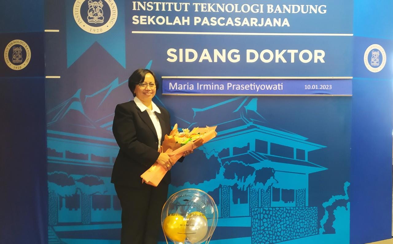 Dr. Maria Irmina Prasetiyowati, S.Kom., M.T. pada saat pasca-sidang Doktor di Institut Teknologi Bandung. (Dok. Maria Irmina Prasetiyowati)